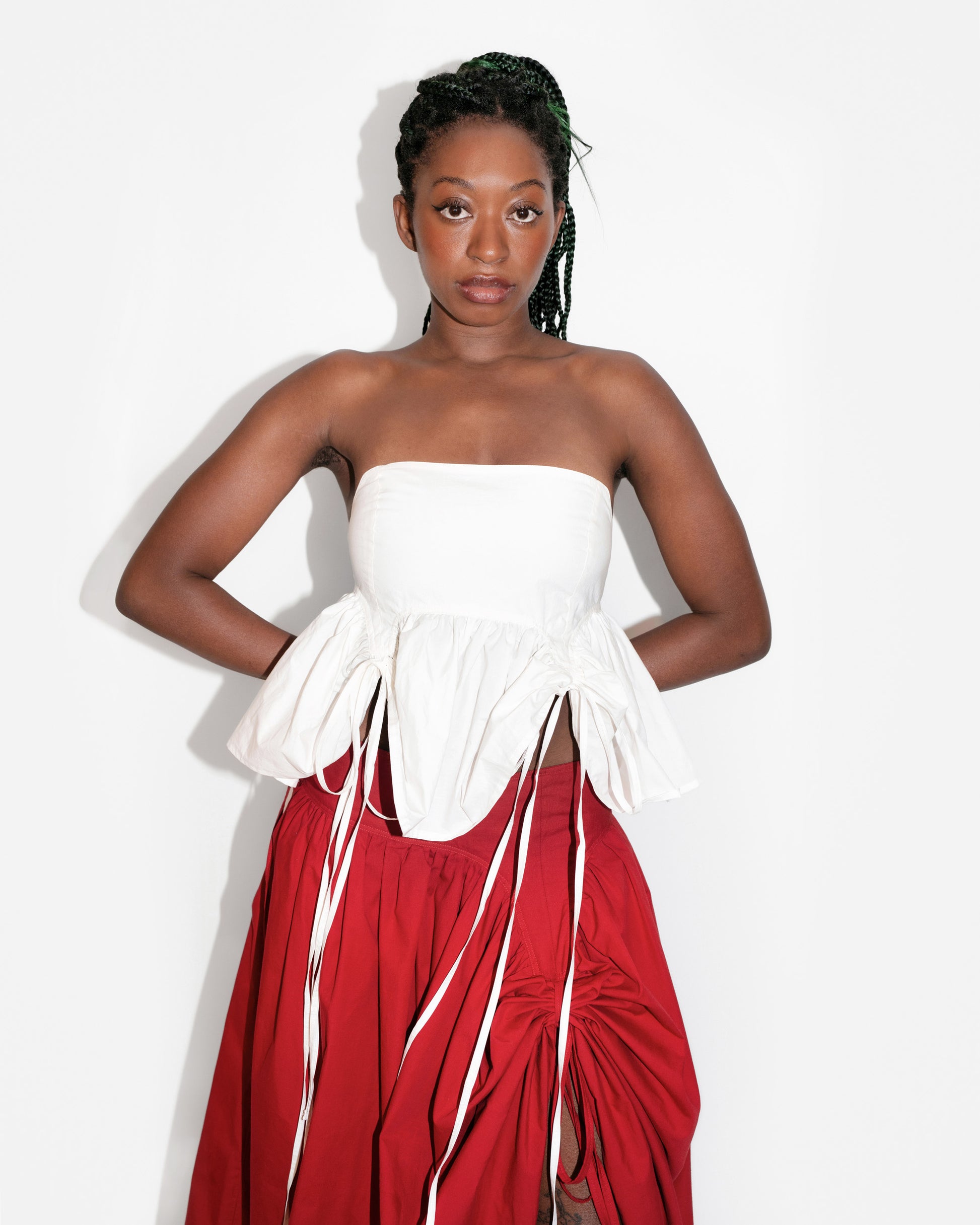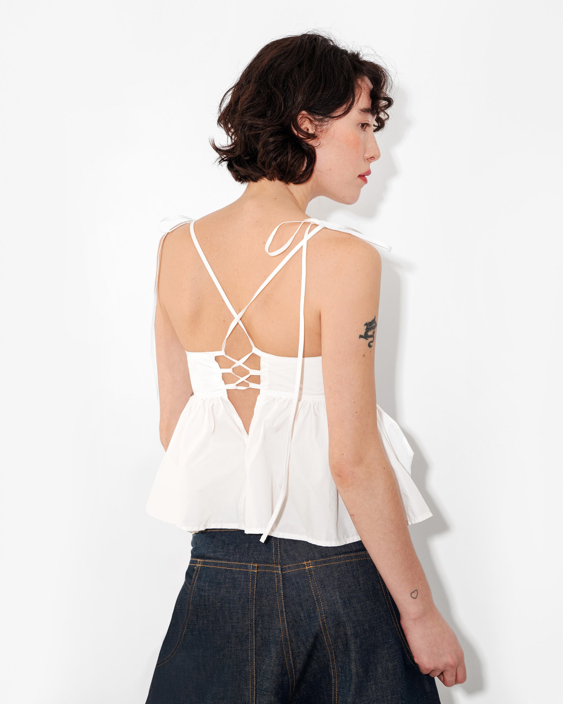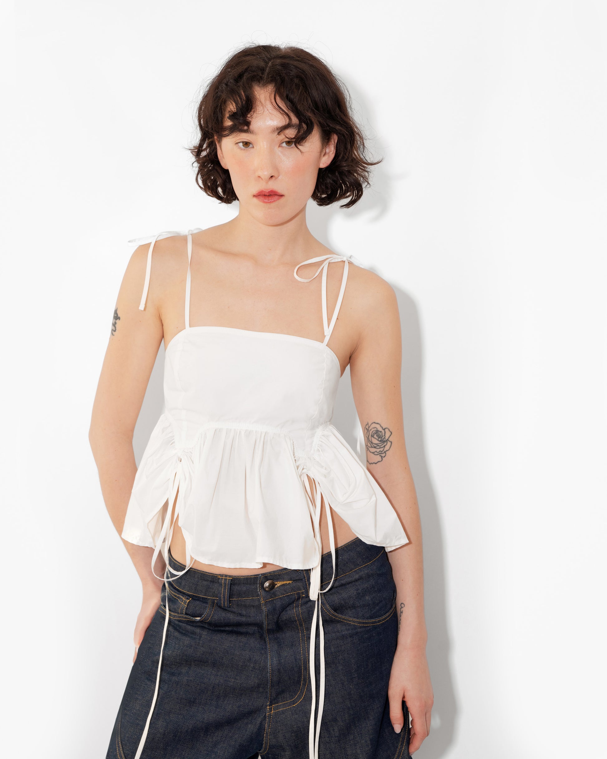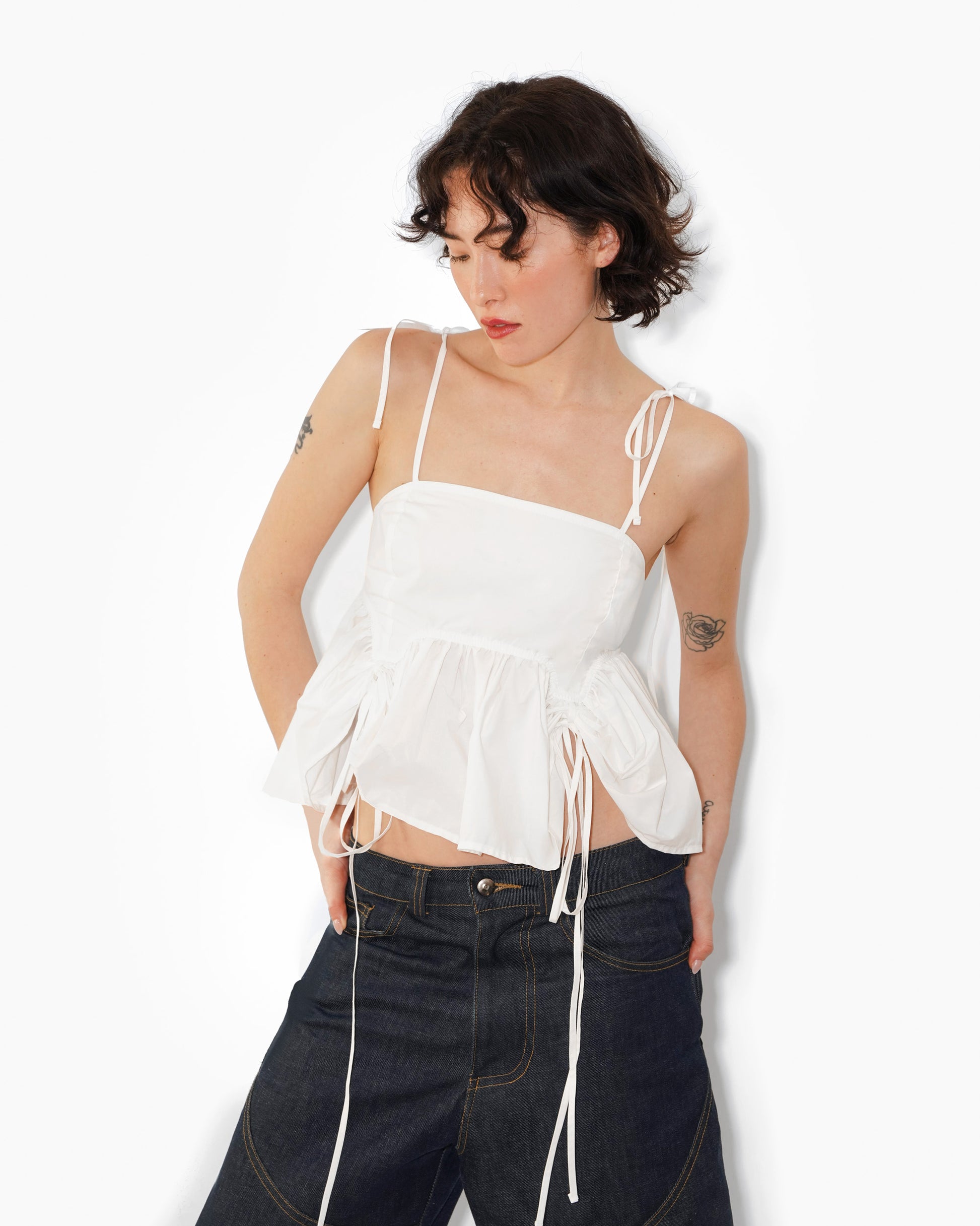 A signature Ella Mae piece, the Butterfly Blouse is a babydoll style top that nurtures creativity. Designed to be convertible and worn a multitude of ways, this top will morph into something perfect for any occasion. Features an adjustable lace up back, versatile multi-way straps, and two ties that cinch to gather up the hem on either side.