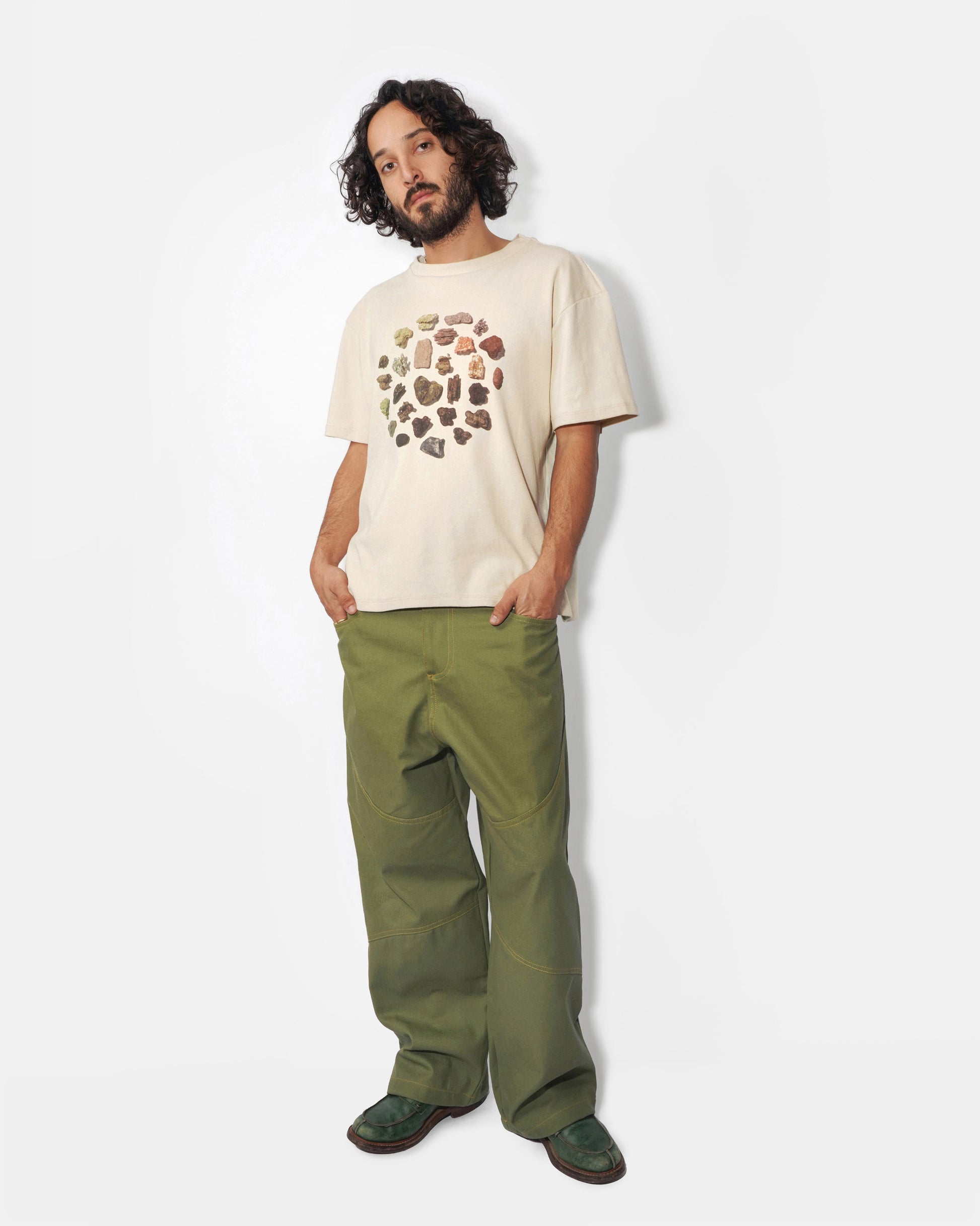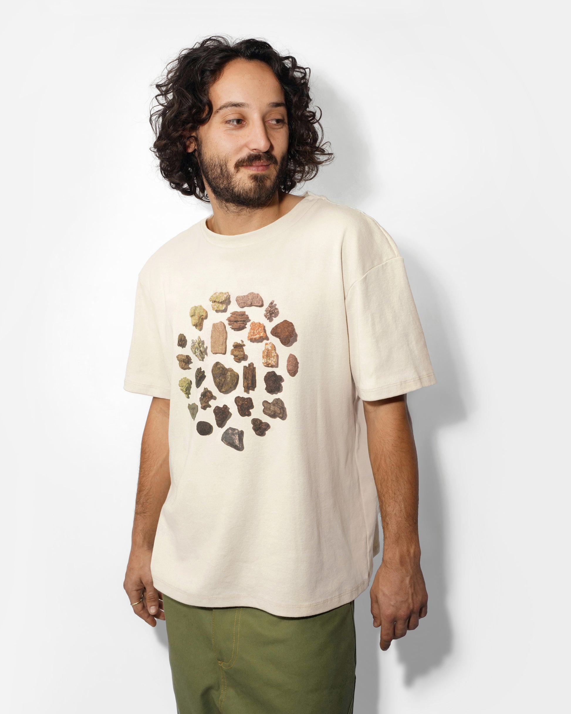 Carry with you the stones you arrange on the beach for only the seagulls to see; The Formation Tee is screen printed with a subtle spiral of carefully selected stones. In collaboration with artist Cameron Galley, the stone images have been manipulated into otherworldly objects. Fit is a classic crew neck tee; tends to fit true to size on men and roomier on women. Made with recycled organic cotton.