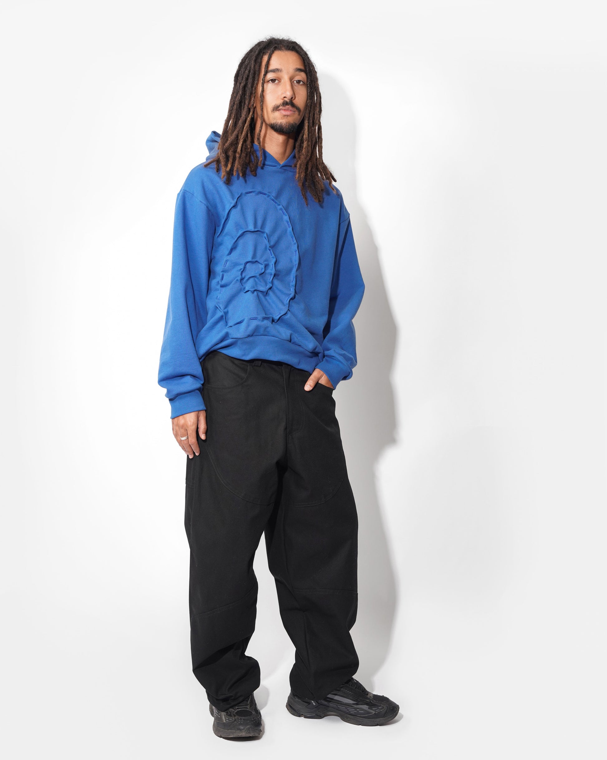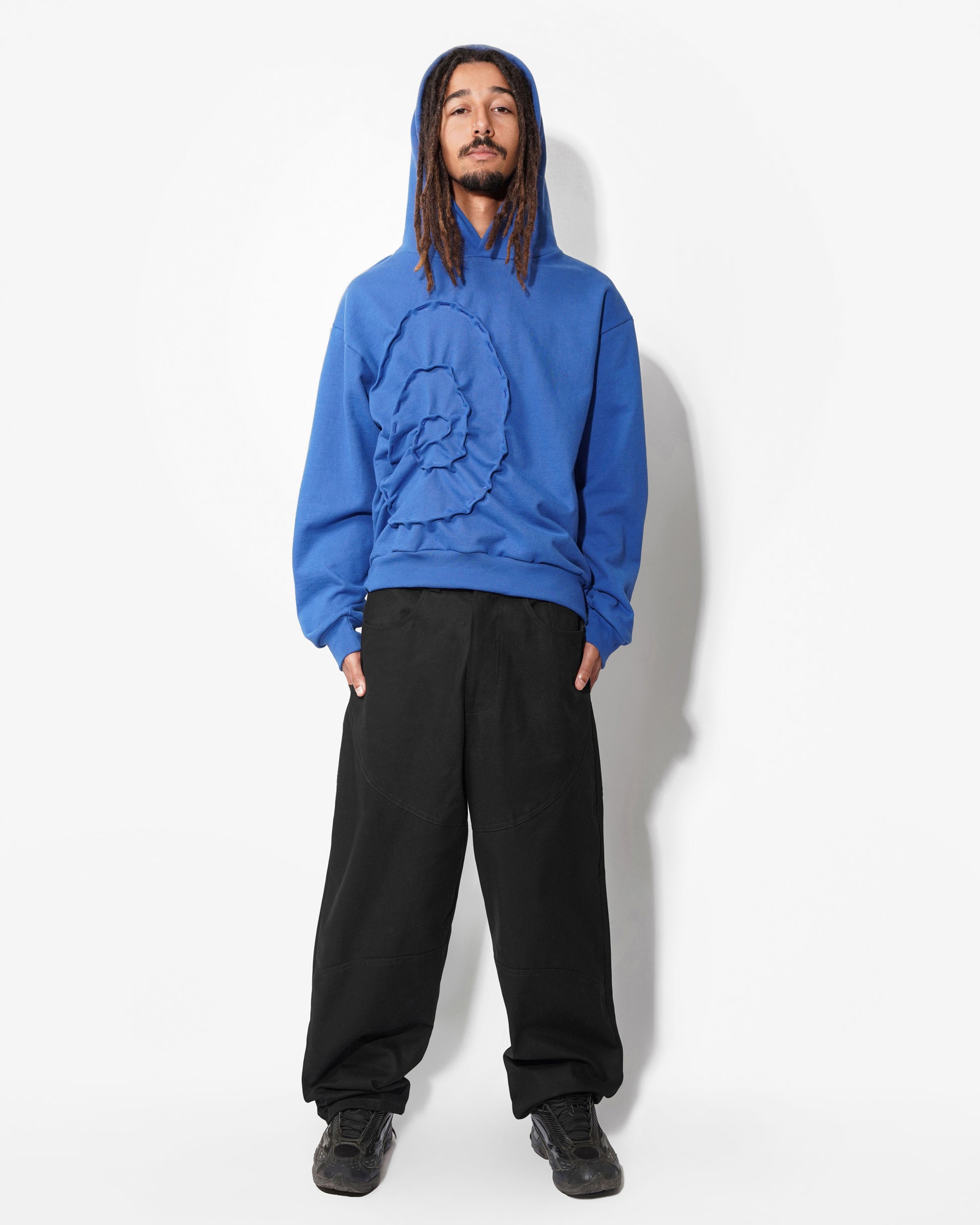 Our classic wide leg pant, crafted with love from black cotton twill. Designed to be worn to pieces, the Leo Trousers feature seven pockets, inset knee patches, and subtle black topstitching. Muddy the cuffs, find long lost pebbles in the pockets, carry them on your hips for years.