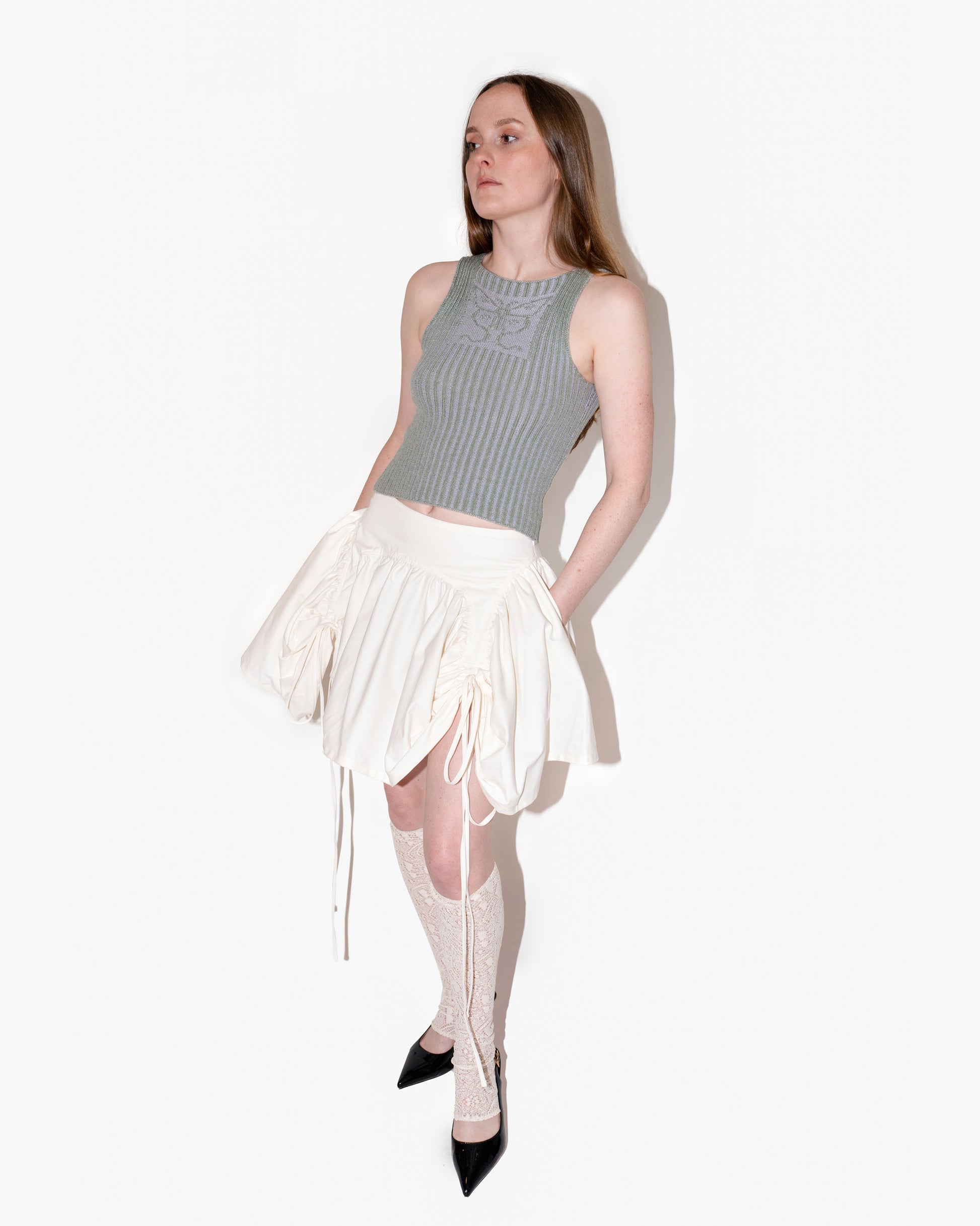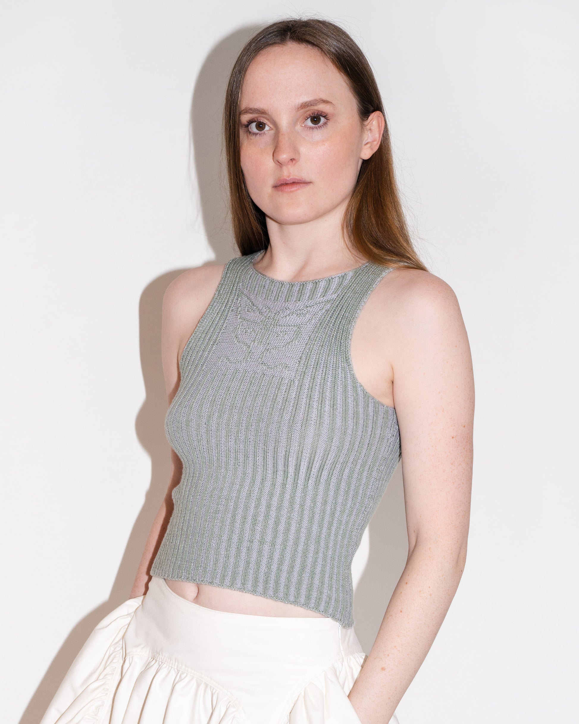 A collaboration with textile artist Camille Zacky, the Luna Tank is a fitted, ribbed knit tank made from 100% Merino wool. Dual color ribbing creates a striped effect, giving this piece extra texture and dimension. The image of a luna moth lies over the heart; let it remind you of renewal, and inspire a sense of pure wonder at the world unfurling around you.