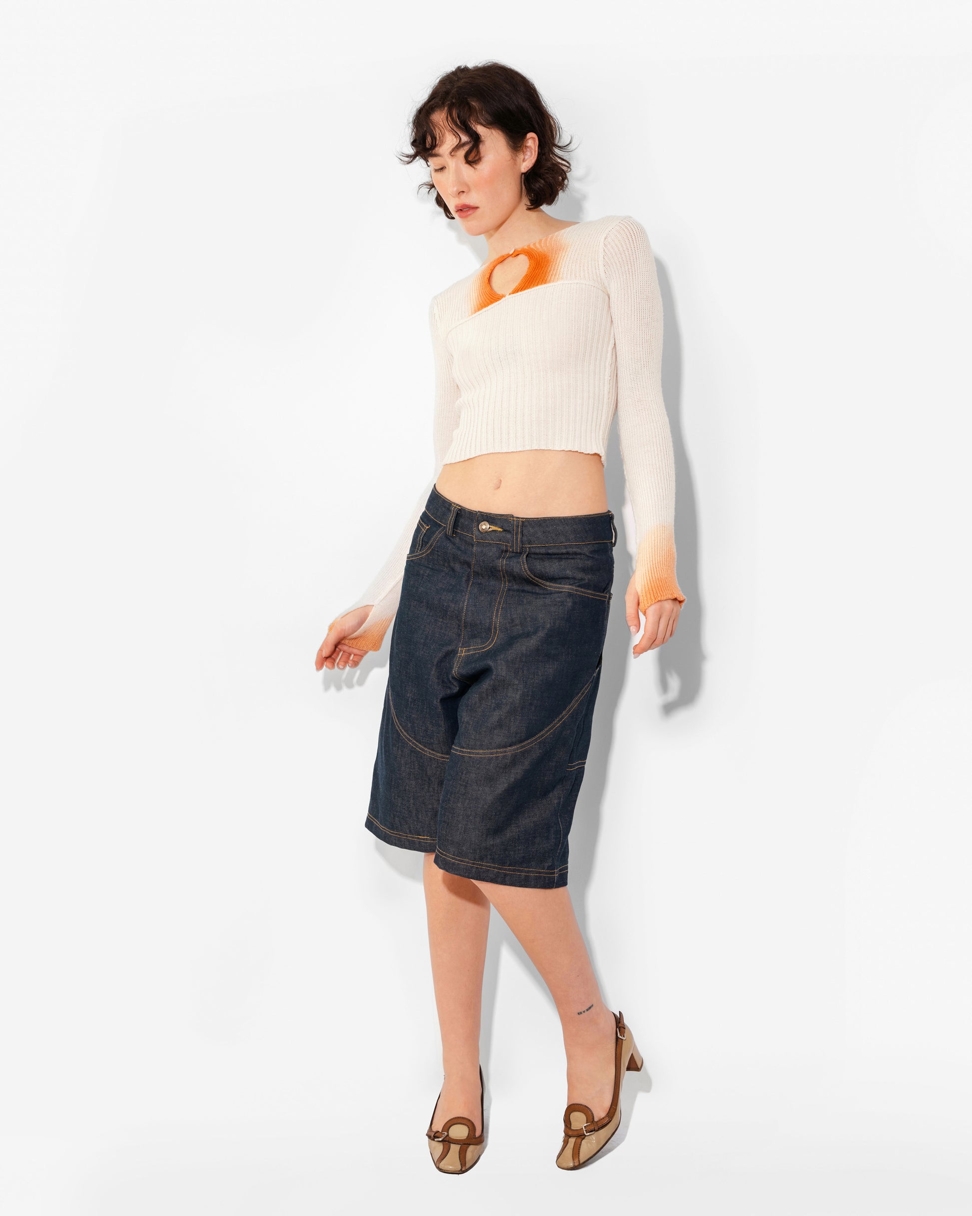 Camille Zacky X Ella Mae knitwear. 100% Chilean wool, with ribbed details. Fitted sweater with ribbing hand knit in Los Angeles. Naturally dyed with tree roots around the edges of the heart and base of the hands.