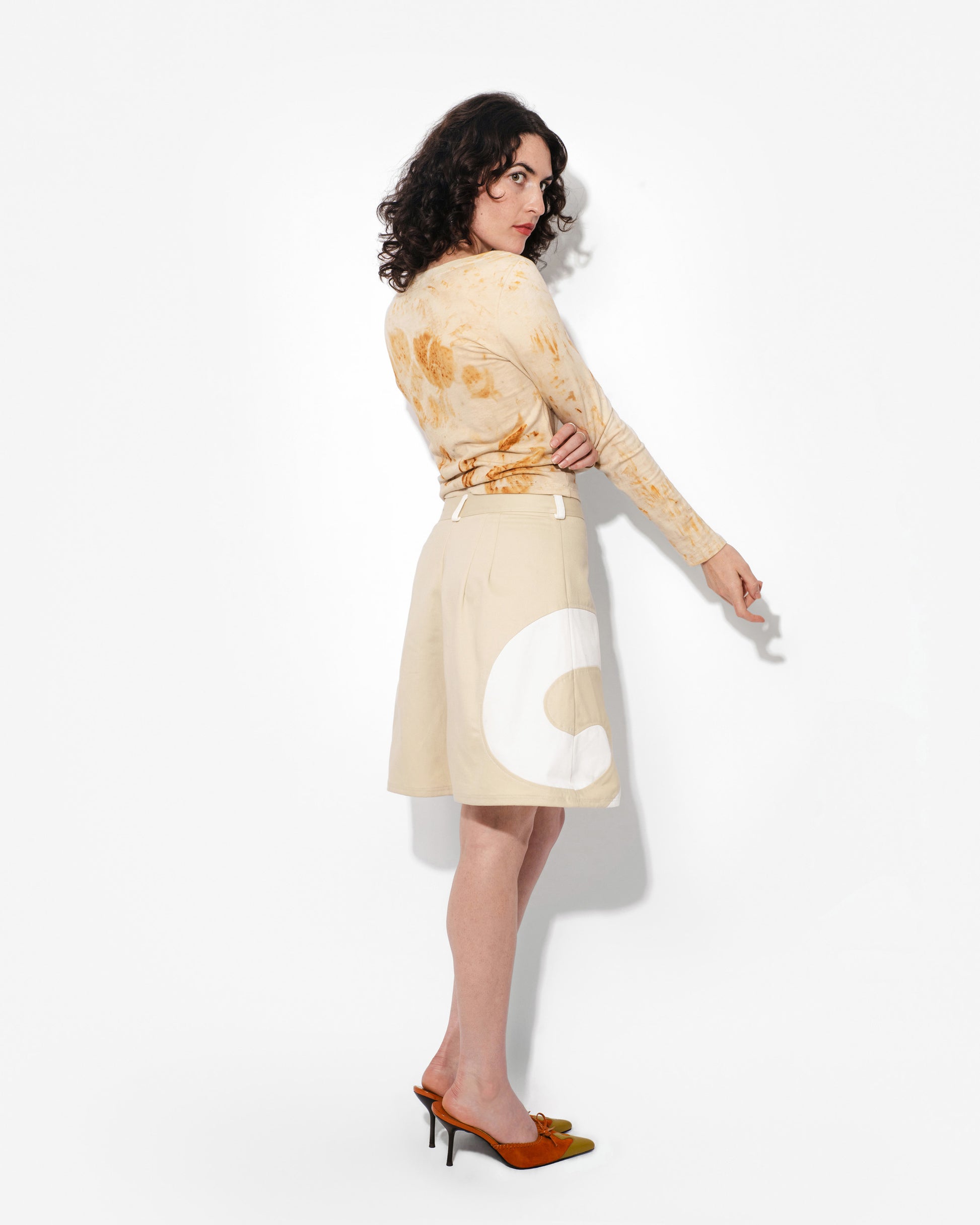 Our favorite inset spiral emblem adorns the sides of our Ziggurat Shorts. Crafted from a stiff yet gently pliant cotton twill, they hold their shape while moving comfortably with you. We paired a warm ivory base with contrasting lily-white panels to highlight the sculptural silhouette. The flared leg adds a breezy, flattering sweep, finished with handmade ceramic buttons.
